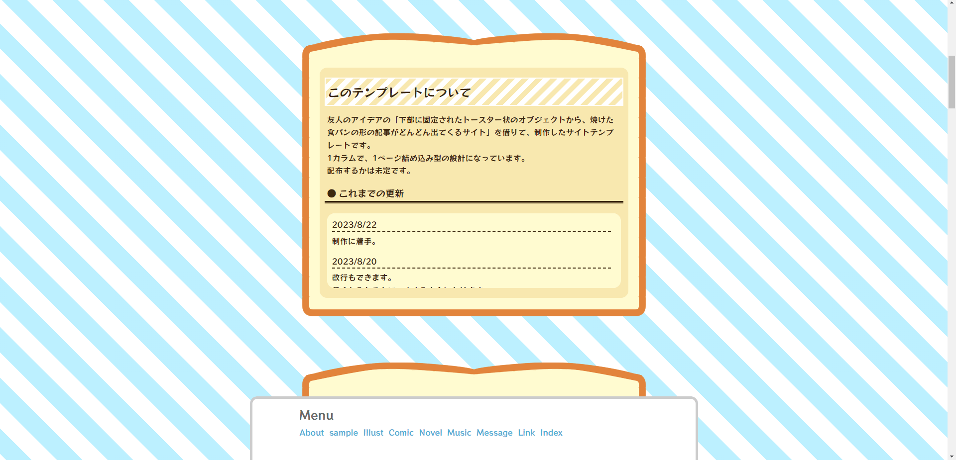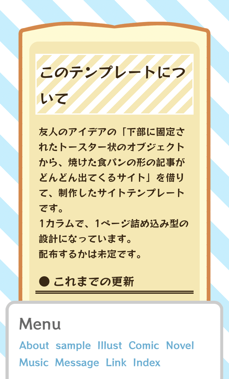 これはTwitterでのお友達が「トースターからトーストが出てくるサイト」の話をしていたので、CSSの練習のためにそのアイデアを借りて作っています