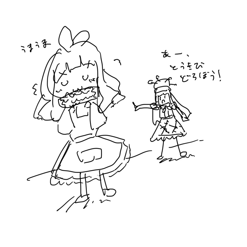 ・あのまち針帽の子、服の縫い目が全体から見て異様に濃いので主線ありで描いた方が映えそう。あと縫い目はたぶん直線じゃない(スカートは布なので)