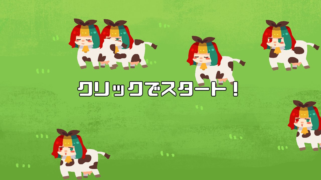 そこに「初期位置をランダムにする」「牛の表情をランダムにする」「クリア表示に秒数を表示する」というアレンジを加えています。