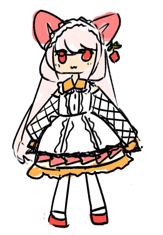 「スイーツ大好き猫耳おじょーさま」というラフを発掘したのでそれを元に描いてます。
